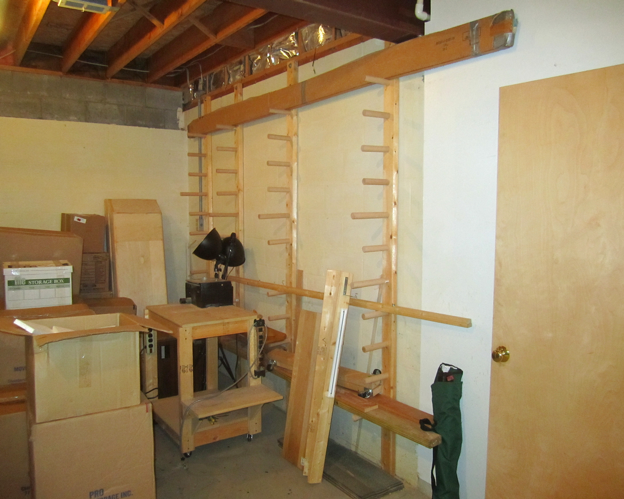 I did mention boxes didn't I? This is to be part of my space. The previous owner stored hardwood trim on the dowel racks. I want to salvage them to an extent and adapt them for the storage that I feel I need.