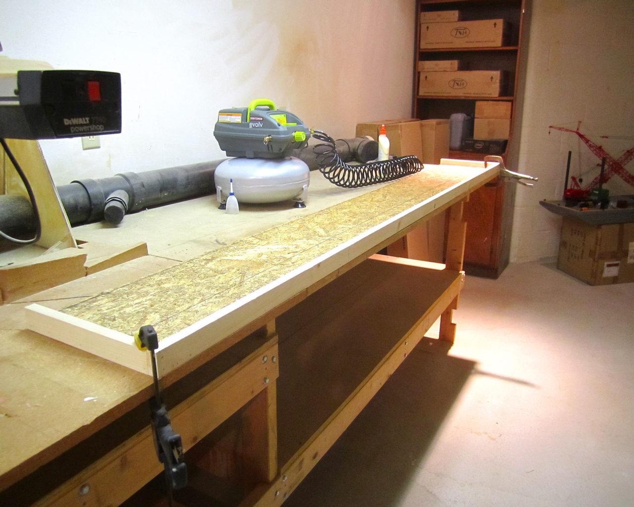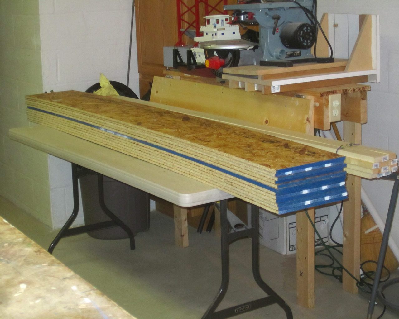 So first up is some shelves. I've never used OSB before. Thought I'd give it a try. (Overall verdict later on) I could not get 4 x 8 sheets home so Lowe's kindly ripped them in to three equal pieces per sheet. Also brought home an arm load of 1 x 2's.