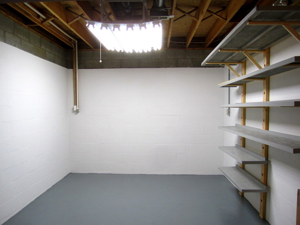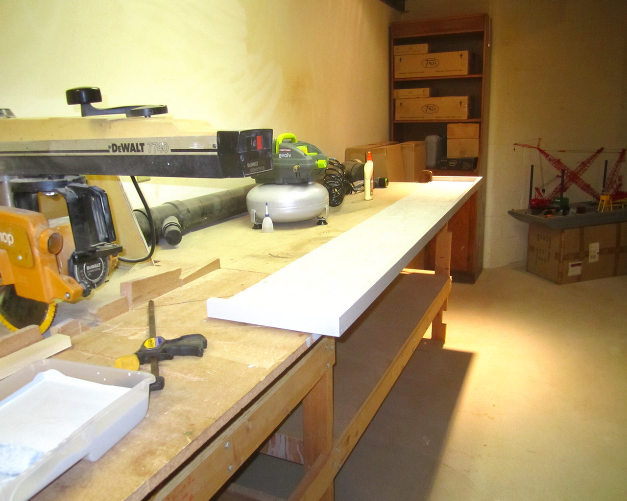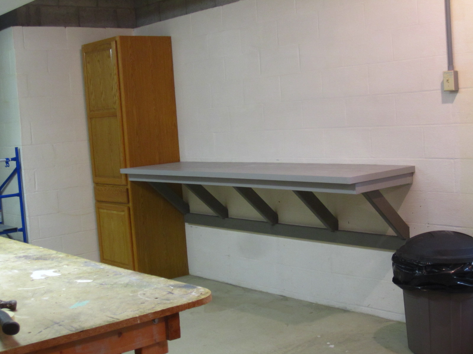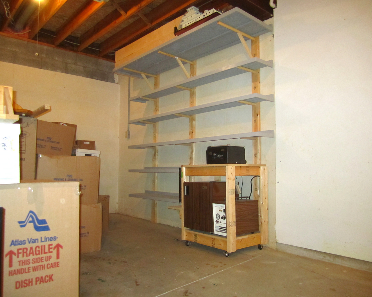 Now with some paint on it. This is the first little thing learned about OSB. It doesn't take paint all that well. Tends to raise the grain. But for basic basement shelving I'm still okay with it.