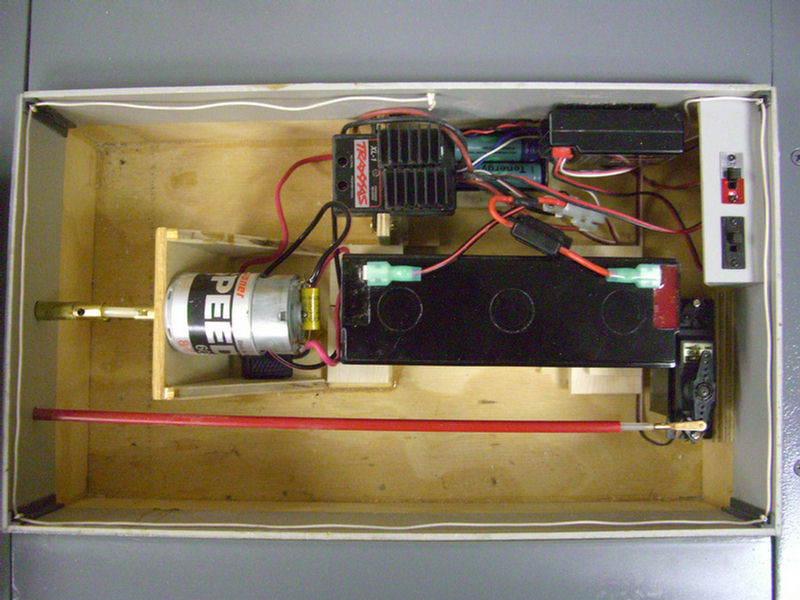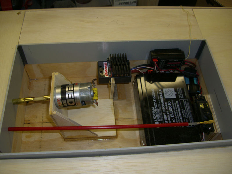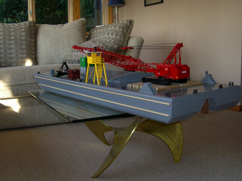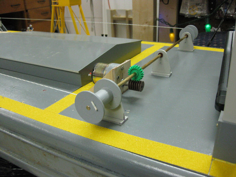 The barge is designed to be pushed by a towboat. Since I have not built a towboat and want to get something in the water, I will propel the barge without any protruding give-aways. Then will remove the driveline and use it in the towboat when ready, bringing the barge back to its intended non powered use.