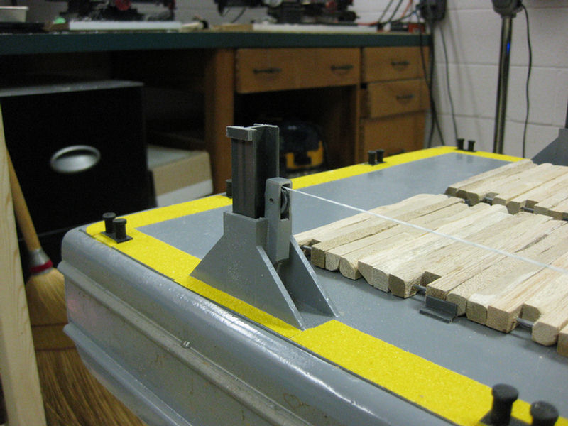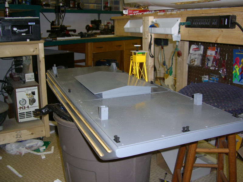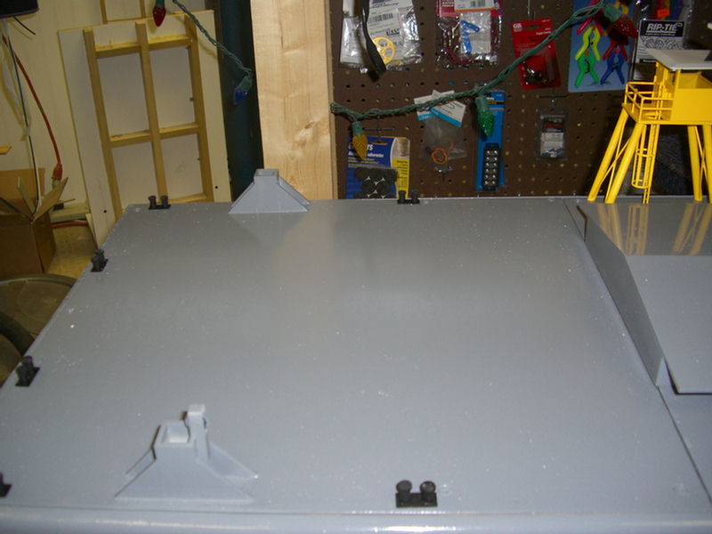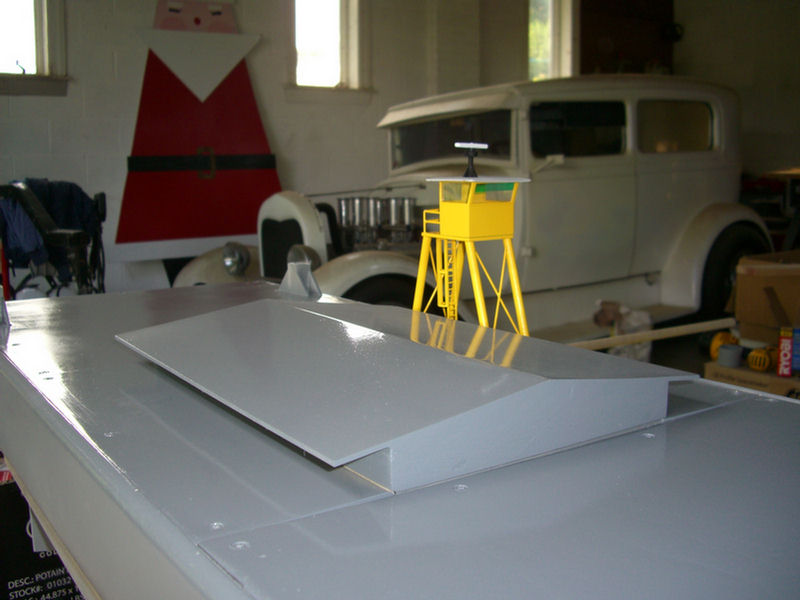 Slots are cut in the bottom of the hull and styrofoam has been attached to the underside of the deck plates. I'm getting pretty close to getting this thing wet.