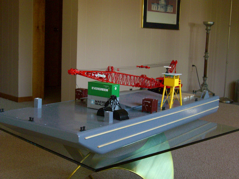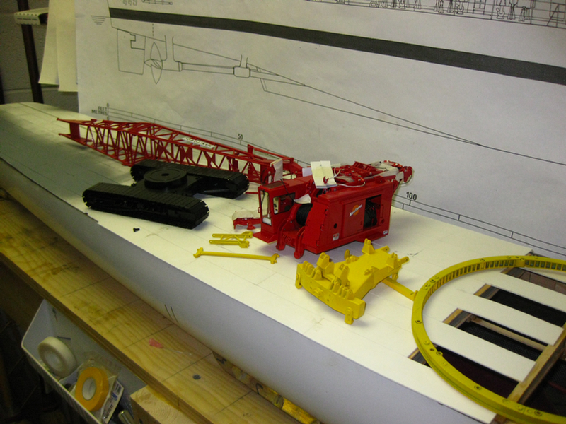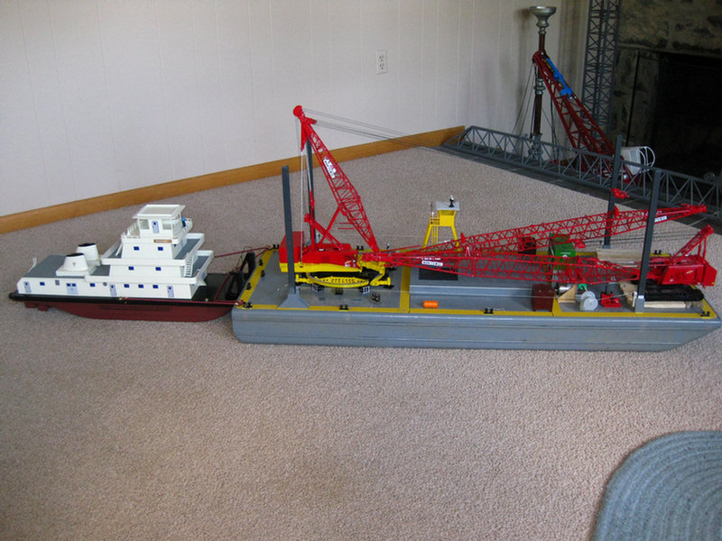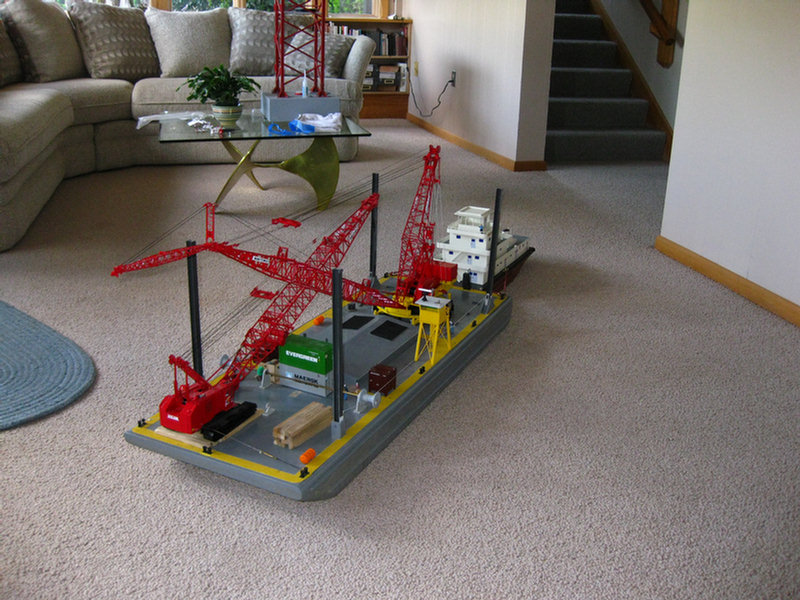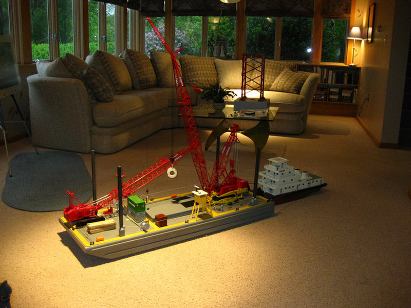 I will next re-work and place the crane this barge was designed for. The Manitowoc 4100W Ringer.