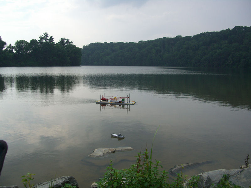 We get to a beautiful reservoir I place the barge in the water, and as I bent down to turn on the switches, I dropped my camera in the water!