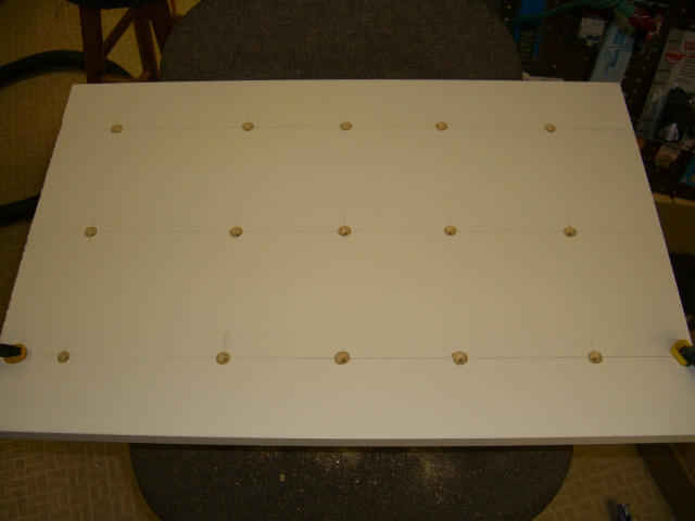 Countersunk holes for screws to secure the hardwood cleats to assure the jig stays flat and square.