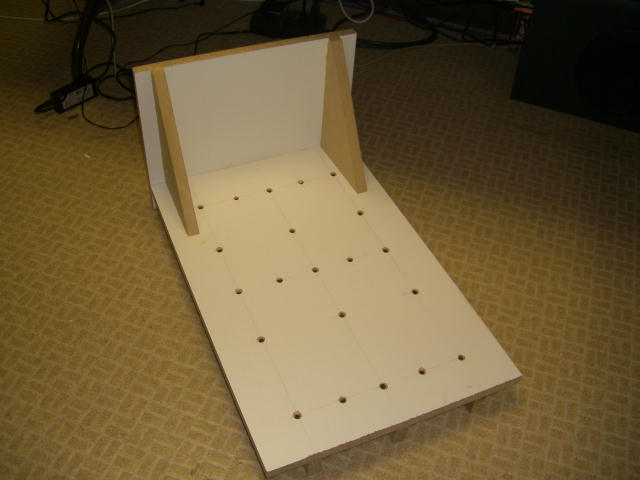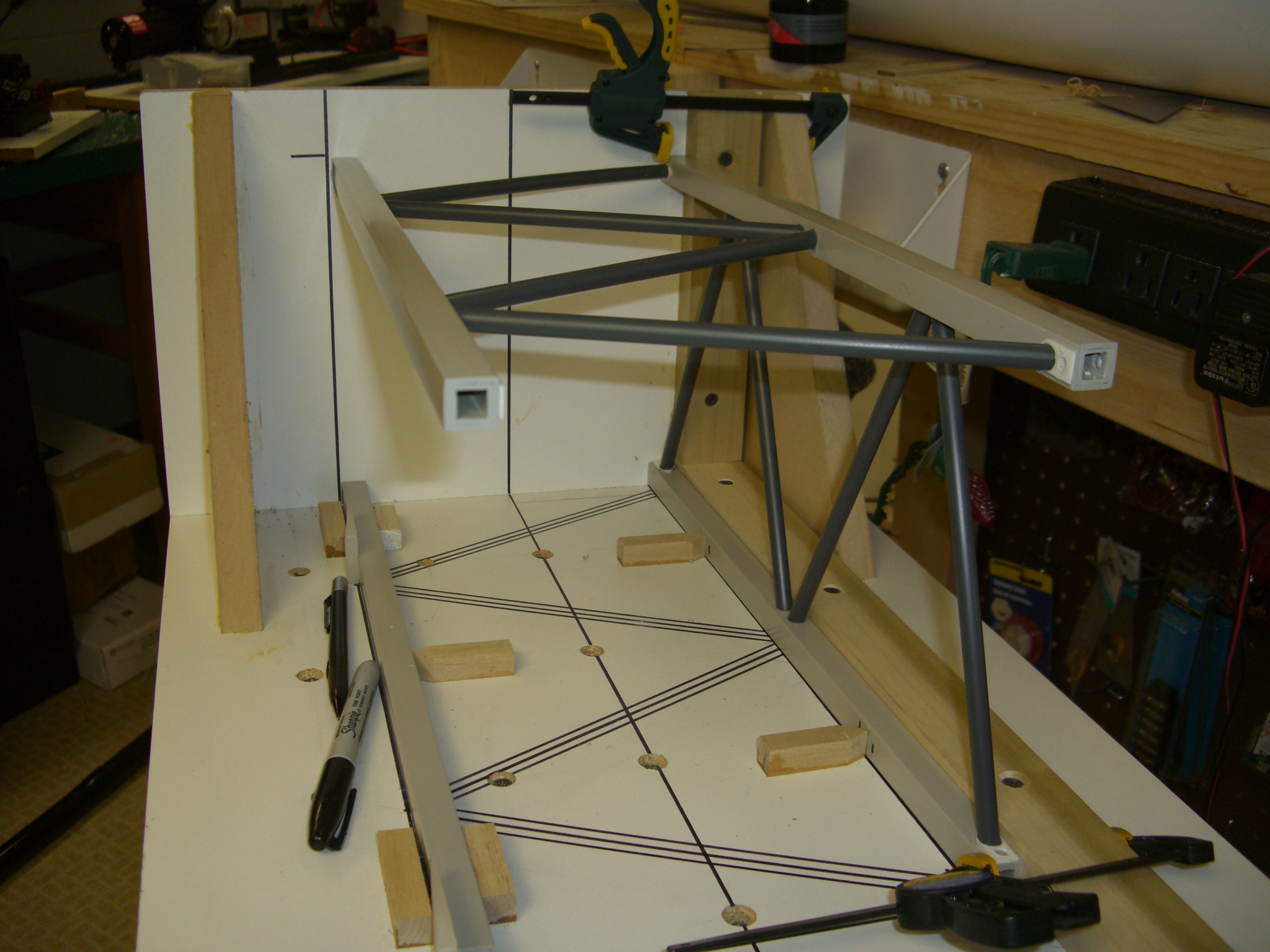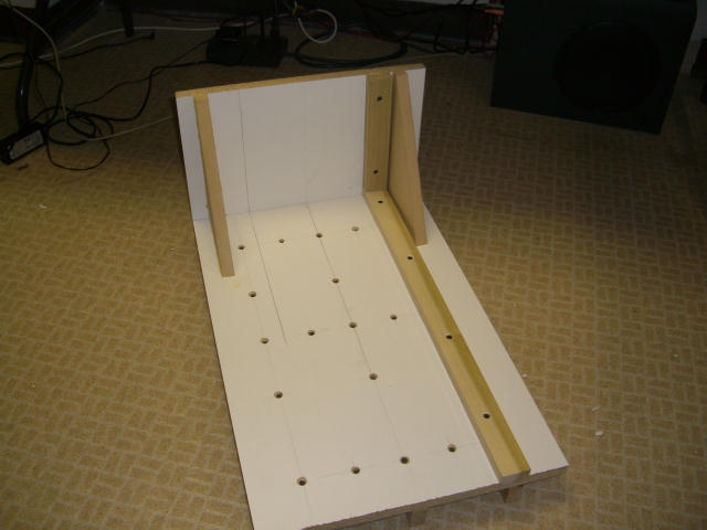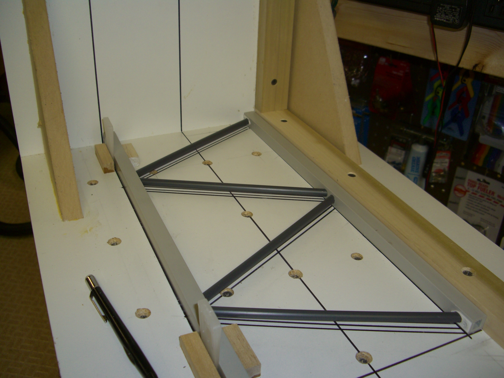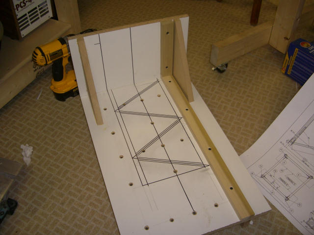 This is the start of the main chord jig. Again, hardwood is used to minimize any warping. This jig will allow me to drill precise and consistent holes in the main chords so each chord will fit, and pin properly, to the next one. I HOPE!