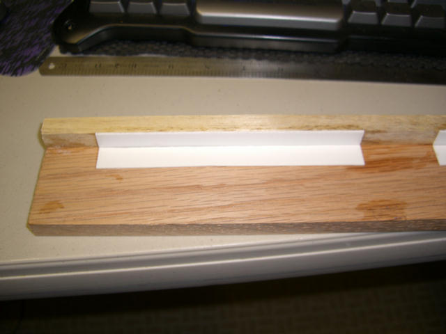 A hardwood reference rail is fastened to the jig.
