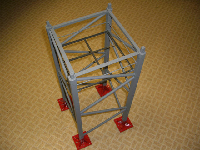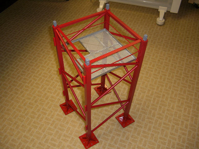 The feet are on the bottom of the mast and the platform only lacks the expanded metal floor.