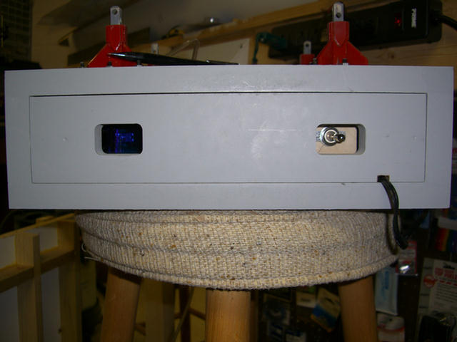 Gluing the top in place. The front panel will be removable to gain access to the inside for the air compressor and storage