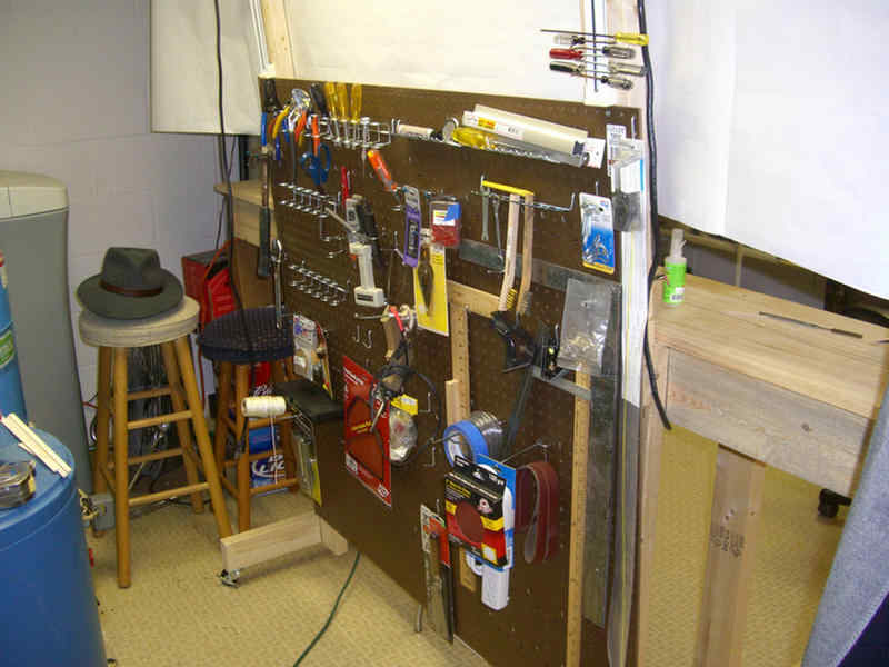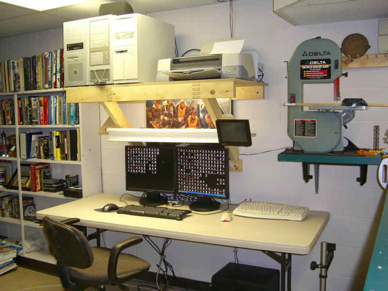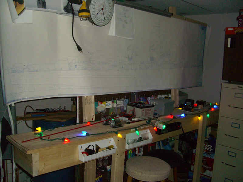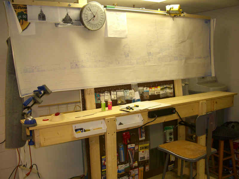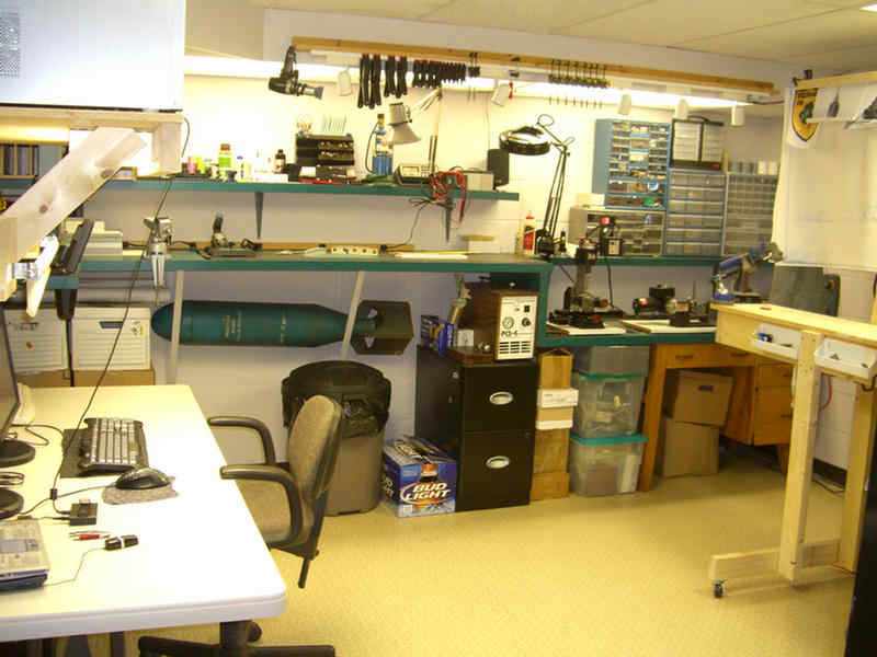 One cannot build a destroyer of this magnitude without some room to fabricate and make a general mess of things. Here are a couple photos of my shop where I am building the O'Bannon. My shop is rather small, but it works. This house was built in the early 60's when the cold war was very much on people's minds. This room was built as a bomb shelter. It seems to be a good place to build the O'Bannon. So here is a quick walk around my shop.